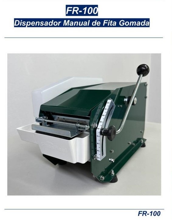 O Aparelho Dispensador de Fita Gomada FR-100 é um aparelho manual de umidificação e corte para o uso e aplicação de fita gomada no fechamento de caixas de papelão.